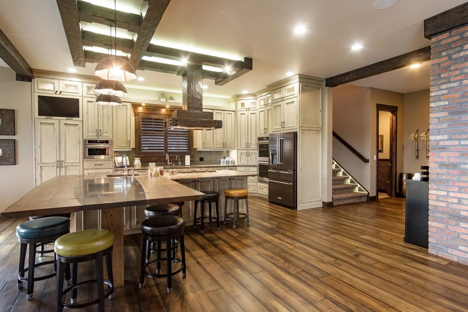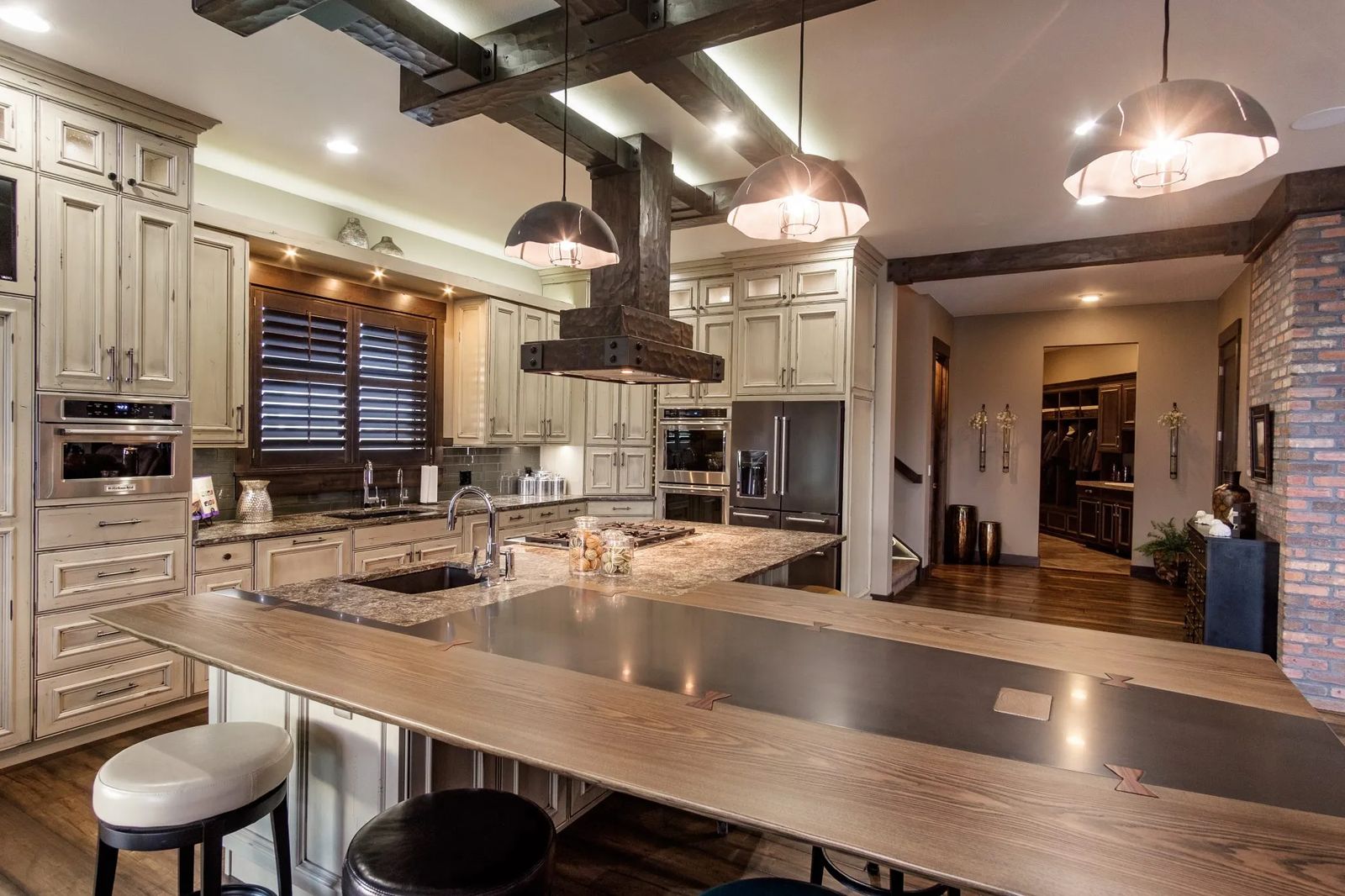 For a property of this magnitude and the voluminous aspects involved, Tana says it came together quite easily. Everyone worked for the common goal of building and tailoring a home fit for a Parade. The home boasts organic quality utilizing natural stone, wood and metal. An abundance of natural light fills every room as does an array of pendant, chandelier and recessed lights by Rimrock Lighting.