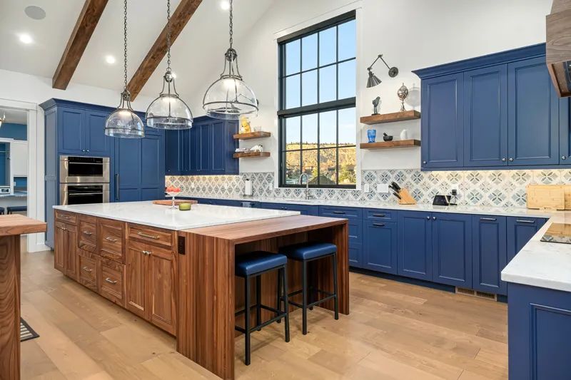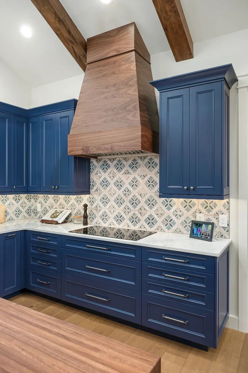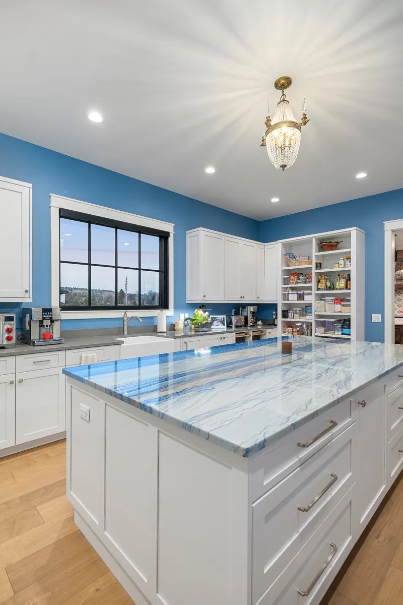 Working with Carla and Patrick on the fabrics, furniture, and design, Tiff Davidson-Blades, of Davidson Home Furnishings & Design, says, “My number one priority is to listen, interpret, and help create the vision the Cobbs had in mind to make the design process enjoyable and successful. We Incorporated some items from their previous home that were important to them and melded them into the ‘eclectic traditional’ style of their new home. Blue was a comfortable and favorite color so we decided to ‘go big’ to pull the various shades together.”