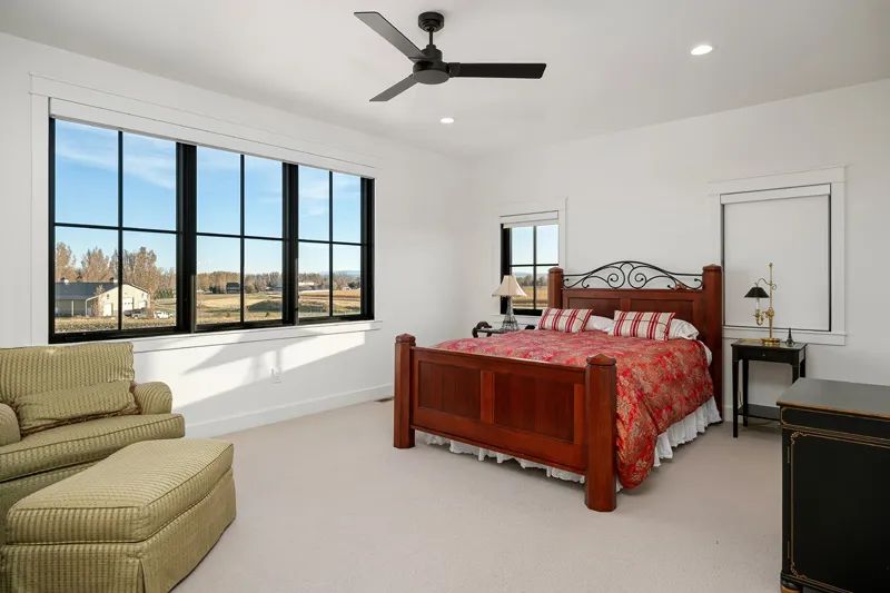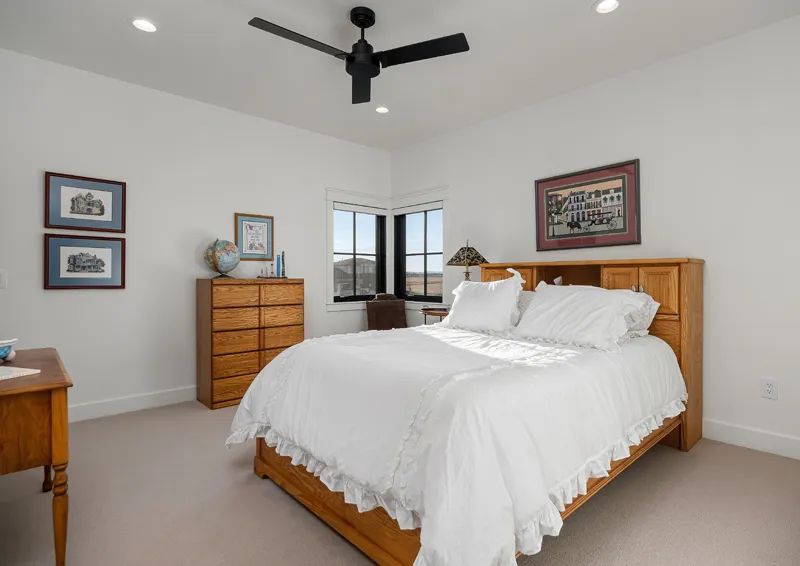 The main floor is a little more than 3,400 square feet and takes up the majority of this nearly 4,800 square foot home. The main living space includes a spacious living area, kitchen, pantry, powder room, dining room, and expansive private master suite. A partial basement gives a little extra storage and a second level provides two bedrooms with two en suite baths, plus a sitting area that will comfortably accommodate family or guests.