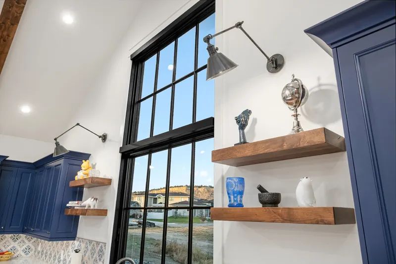 “We wanted to incorporate automated features such as the blinds, lights, and sound system that can be run from our smartphones,” says Carla. “Even our interior egg-shaped glass door knobs turn and open easily for mobility and we have wider doorways if there is ever a need for wheelchair accessibility. Everything we need now and in the future is located on the main floor,” she adds.