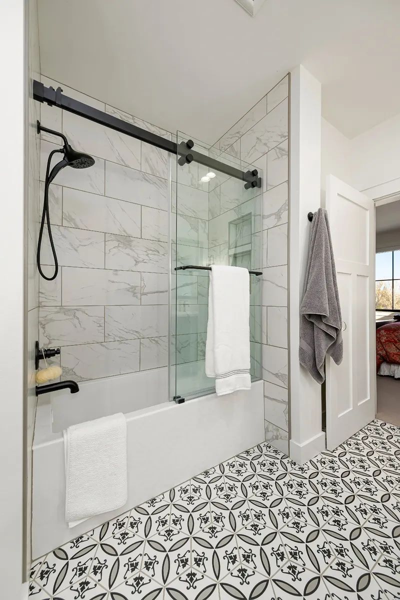 Thinking of the future, one of the upstairs bathrooms is even equipped with a bathtub — just in case “younger members” are added to the family.