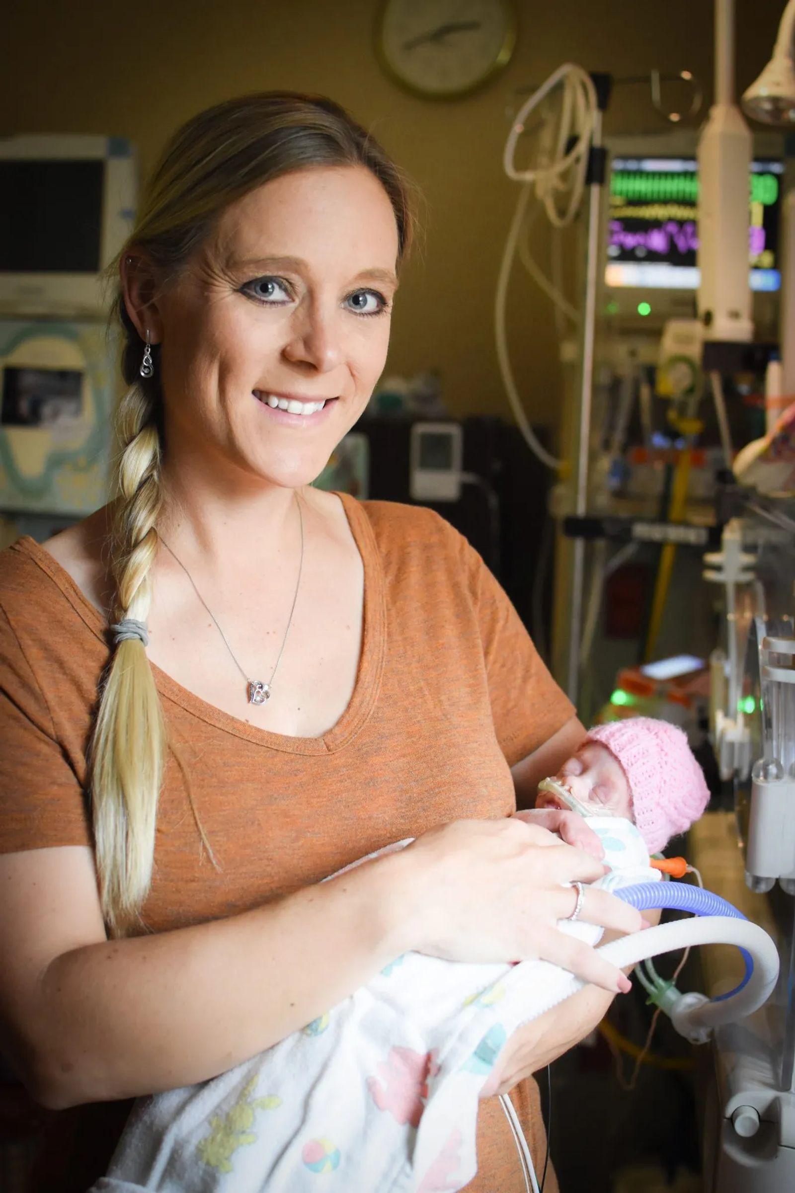 While Amanda recovered from emergency surgery at St. Vincent Healthcare, the thought that she, her husband, and their two kids, Kimber, 6, and Sutton, 5, were 187 miles from home was more than overwhelming. Thankfully, the new family found respite in a kind of home away from home right across the street from the hospital. Amanda and Josh could stay close to their new tiny daughter thanks to the Ronald McDonald House.