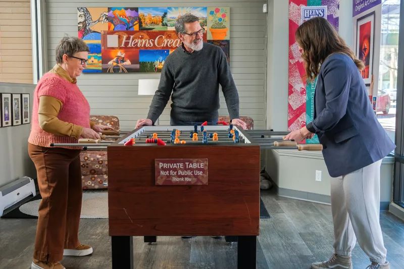 When it comes to Alice’s business savvy, you could say the apple didn’t fall far from the tree. Entrepreneurial spirit is woven through the fabric of her family. Her sister is her own boss, working as an interior designer. Her brother is a self-employed photographer. And then there are her parents. Alice’s salon sits just around the corner from her mom’s business, Yarn Bar, a boutique yarn shop, and a little more than a block away from her dad’s business, Heins Creative, a graphic design studio.