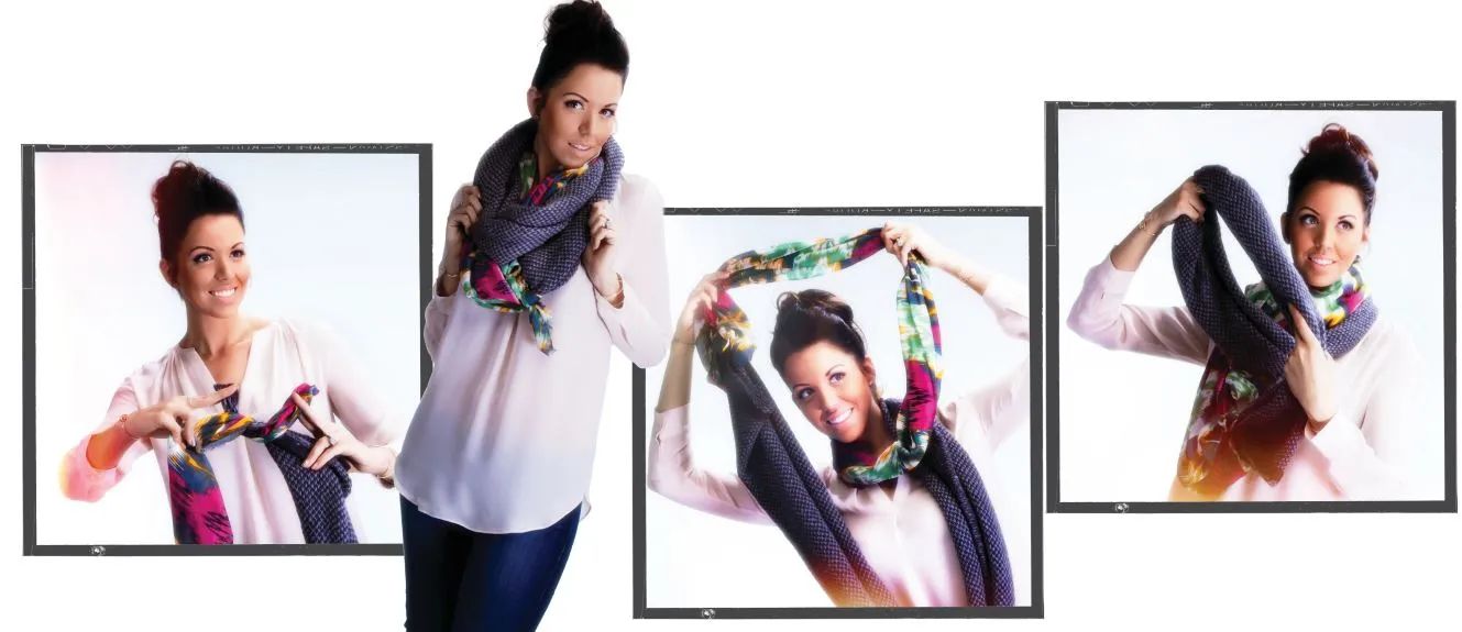 Learn how to wear 4 scarves, 4 ways! Soft silk, plus cashmere, lovely linen — all are popular picks for those posh neck warmers we call scarves. Have you caught the latest fashion trend and all the varieties of how to tie these fun and colorful accessories? We've given you a step-by-step "how-to" so that with just four scarves, you can follow our easy steps to find a new you in a new scarf.