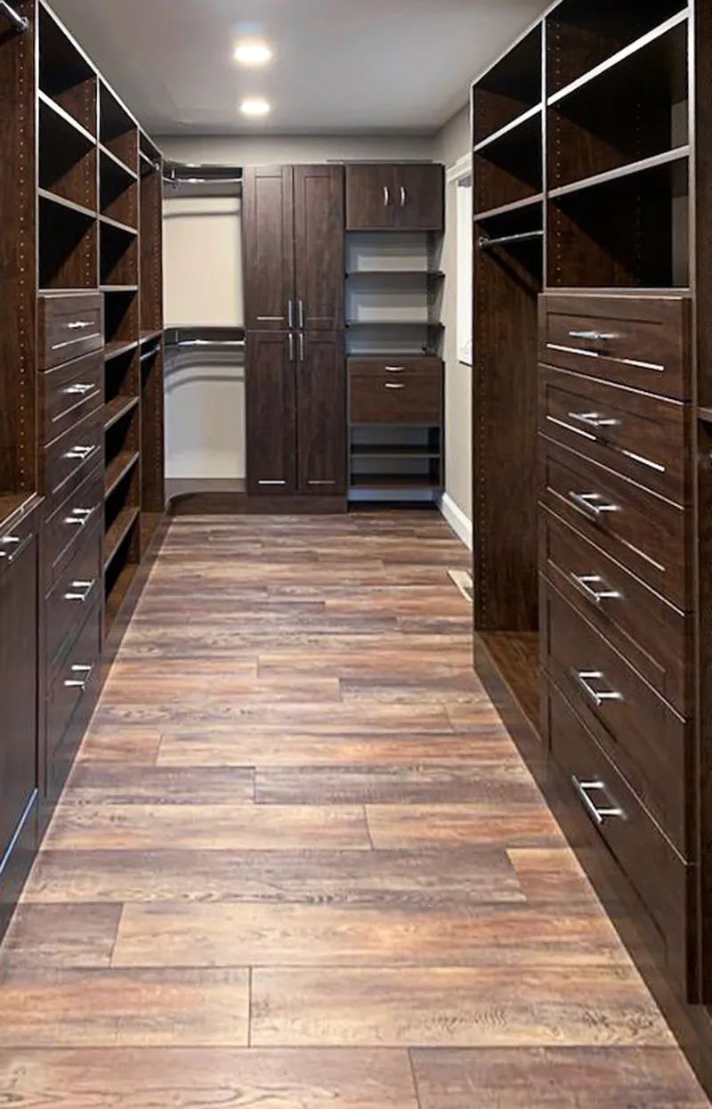 Another ingenious revamp to the master bedroom was enlarging the closet using some of the space from the deleted second bedroom. “I wanted a beautiful closet, and this one’s functional and easy to clean,” Joni says.