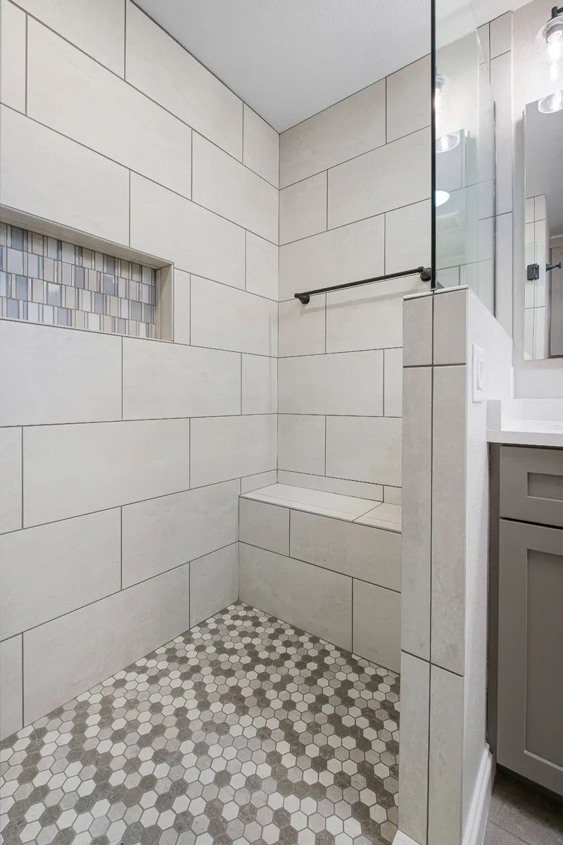 Flipping this bathroom across the hall next to the first guest bedroom and doing away with the second guest bedroom enhanced the entire back of the home. It provided a beautiful new bathroom for guests while creating additional space for the master closet and en suite.