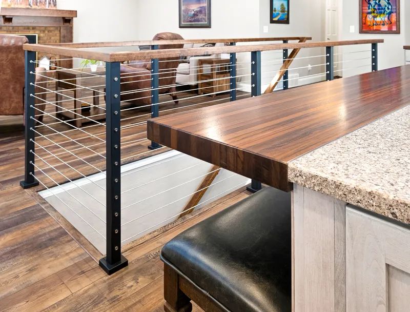 The sophisticated composition of the revised floor plan maximizes functionality. The airy space offers a warm welcome reflecting the homeowners’ organized and active lifestyle. A stunning custom open-cable stairway with alder railing lends an artistic flair to the space. “I wanted wire,” Joni says. “It’s so different, functional and beautiful. And, it’s more aesthetic.”