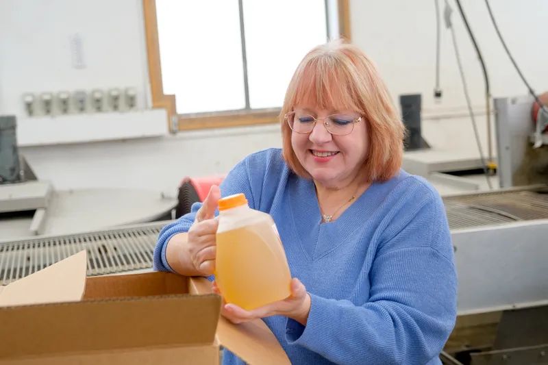 On the Drange Apiary Facebook page, Jodie keeps followers up to date on what’s happening in their business with her “What we are doing Wednesday!” At the beginning of the year, Drange Apiary starts selling nucs or splits, nucleus colonies that are small honeybee colonies for the creation of new hives. The core colonies are put on trucks and shipped to California, where the bees work on pollinating the blooming almond trees. When they return, they go to work to produce honey. The sweet liquid is extracted a couple of times in the summer months. Then, honey is delivered to those farmers, who “rent” space planted with clover or alfalfa where the Dranges keep their bees. The bees are then put into hibernation in a potato cellar in Idaho in the fall before the cycle begins again.