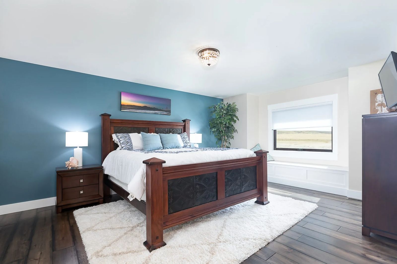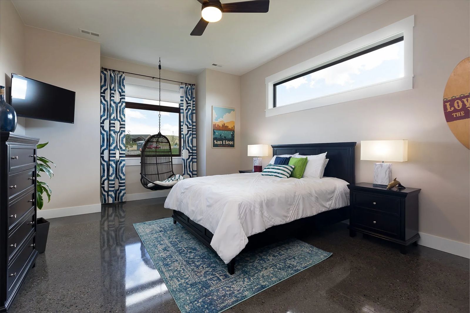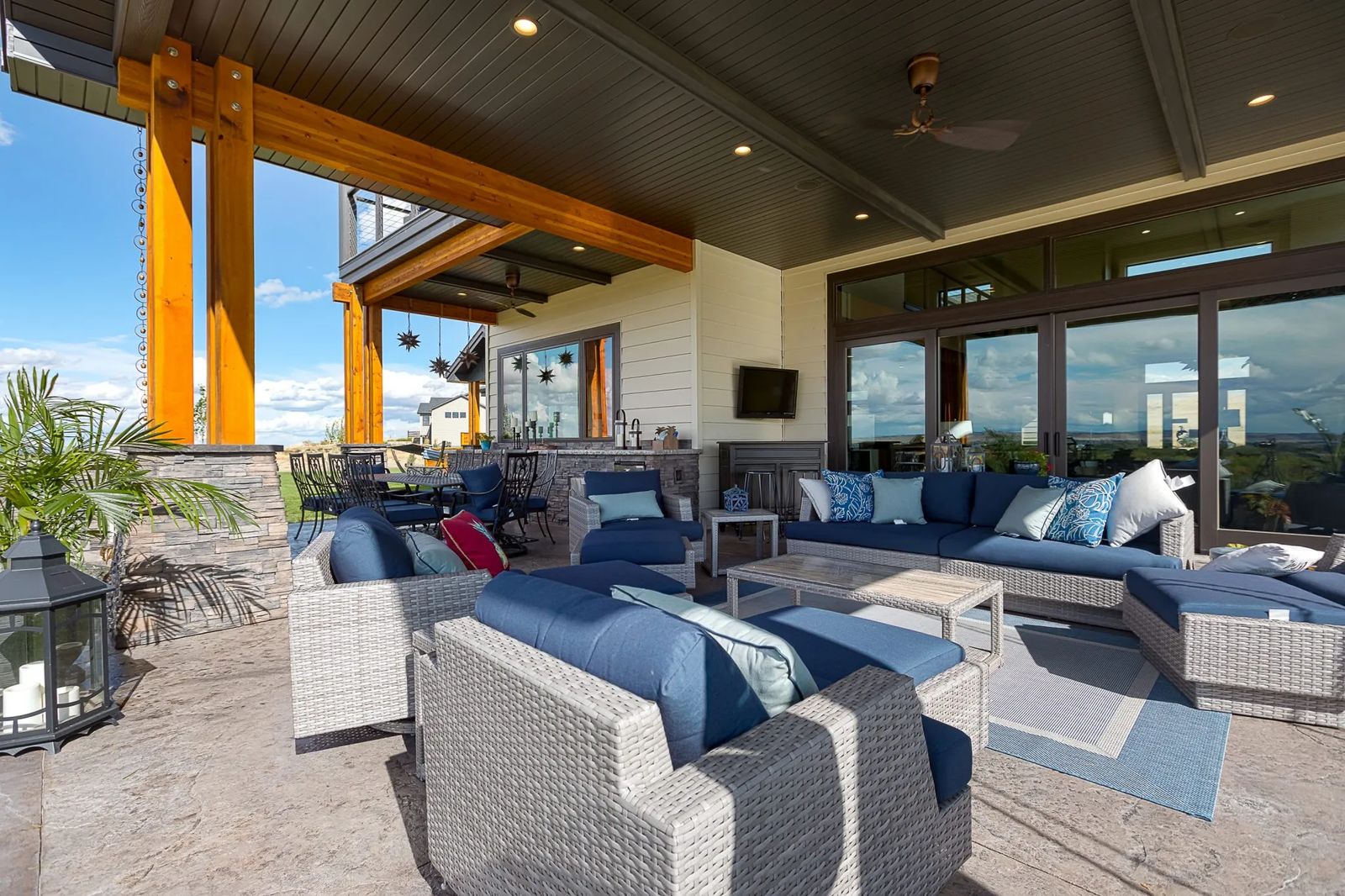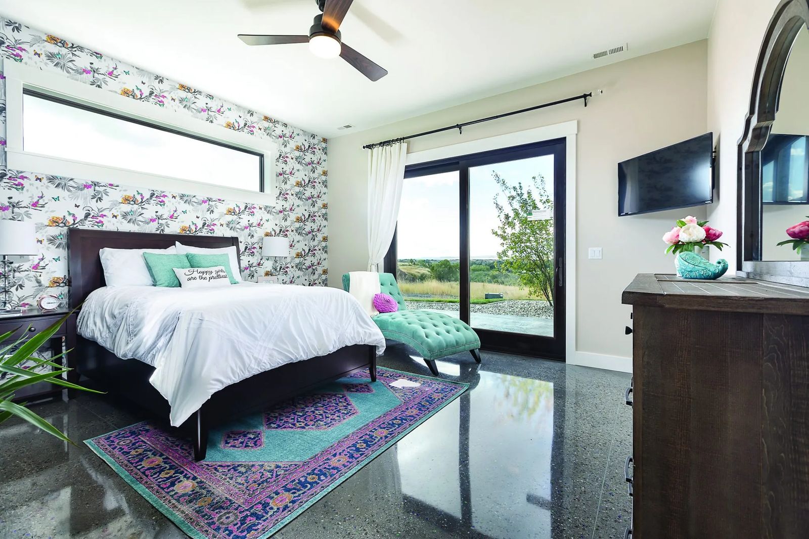 The master retreat resonates with their sense of sophisticated flair, yet, relaxed modern style. It echoes under the Big Sky with a romantic fire pit just steps away, and, of course, there’s the hot tub for those starry nights.