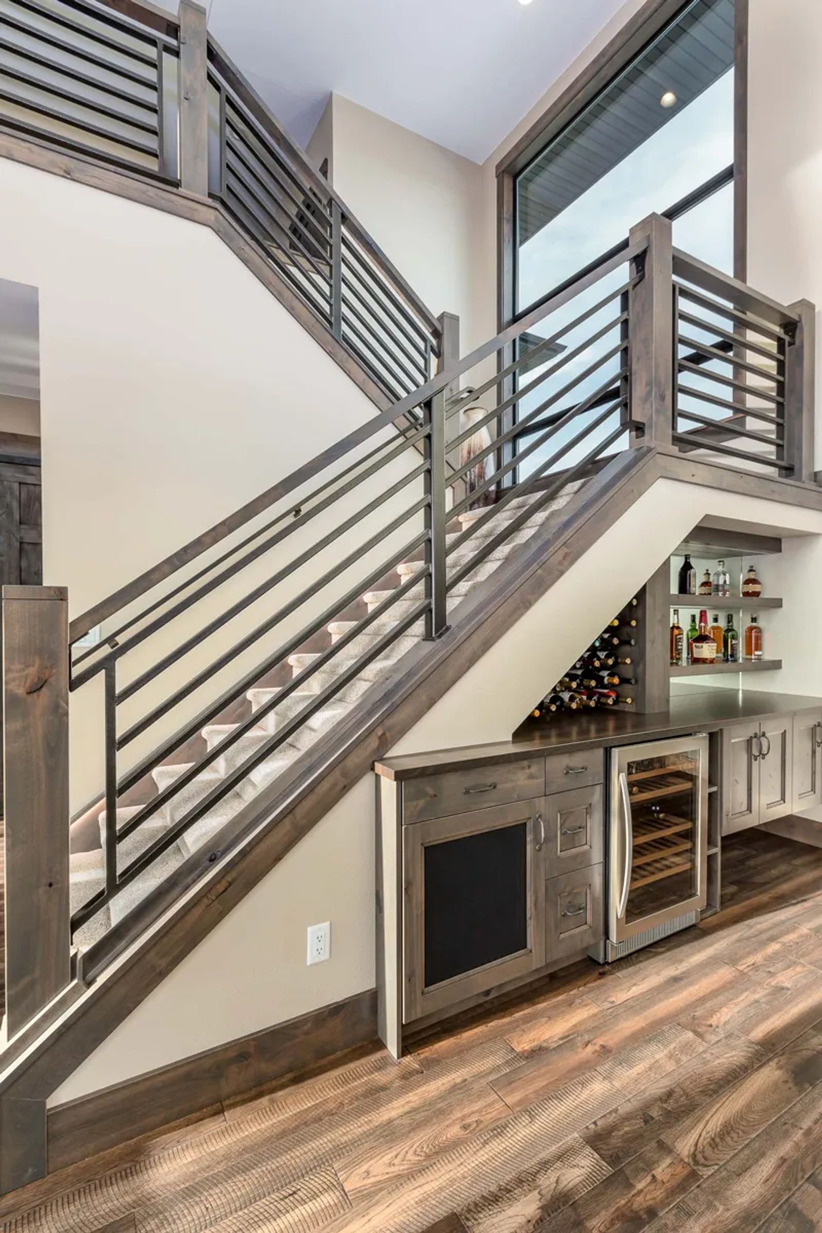 A few steps away, nestled beneath the stairway, a dry bar with lighted shelves adds depth. The open stairway above leads to a loft overlooking the great room where views of the Rims and mountains abound. This upper level plays host to a TV room, Jack and Jill bedrooms and a second laundry.