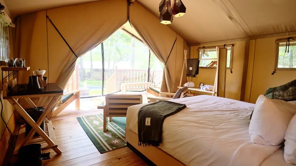 It was also early in the pandemic, in August 2020, that KOA went ahead with the long-planned opening of a new kind of accommodation — the Terramor Outdoor Resort in Bar Harbor, Maine. The glamping site features 64 tents with “highly appointed furnishings,” in Toby’s words, including bathrooms with showers, spa tents offering massages and other services, a main lodge with sit-down food service, and a swimming pool and hot tub.