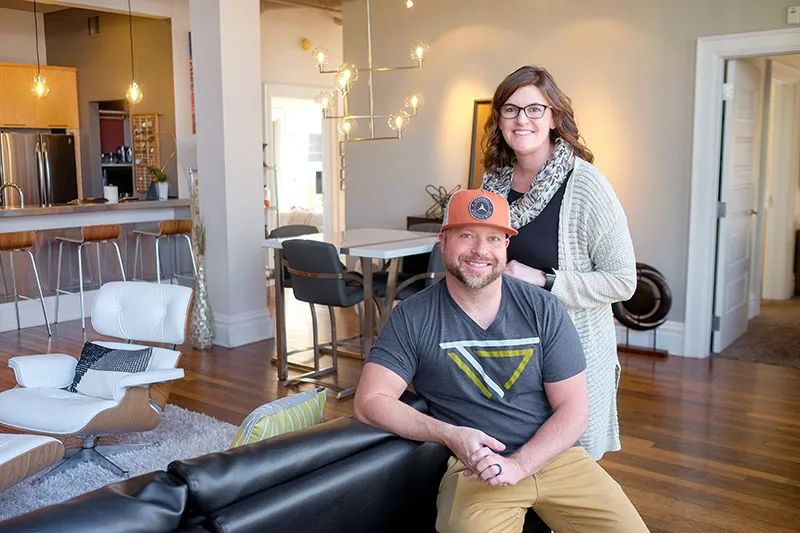 At night, the lights on Broadway reflect a bustling nightlife. During the day, as sunlight filters through four titanic-size windows in Julie and Shaun Seedhouse’s third-floor loft condominium in the Stapleton Building, a bird’s eye view of this vibrant city is on display.