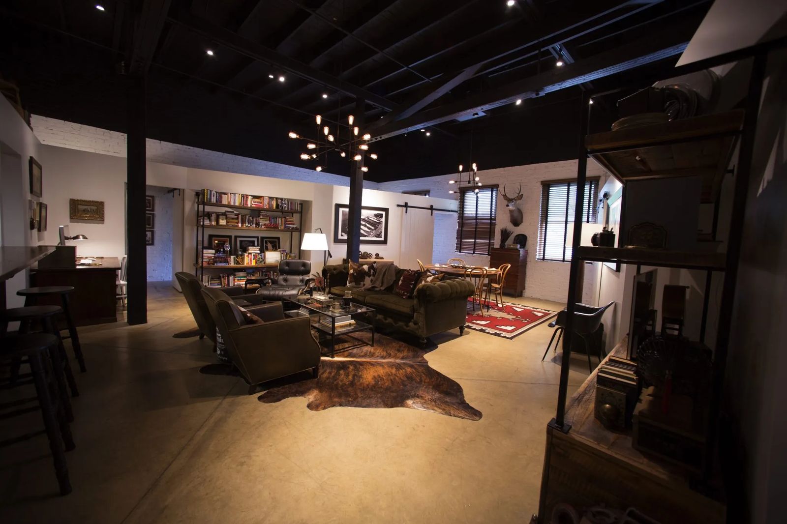 Rudi’s space carries a more rustic and Western feel. “I’ve always had an eye for mid-century. My favorite chair is a combination of mid-century and old world,” Rudi says. In decorating and furnishing his personal space, Rudi had Jeremiah Young of Kibler & Kirch bring in a “more sophisticated piece,” a green velvet Chesterfield sofa. In fact, the entire space was fine-tuned with Jeremiah’s help.