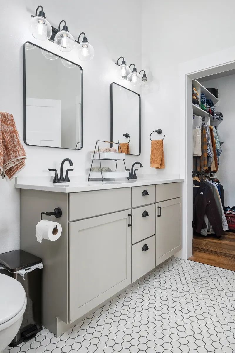 The 3,200-square-foot farmhouse, which includes an unfinished basement, features two bedrooms and two baths on the main floor and two bedrooms with a Jack-and-Jill bath and family area upstairs.