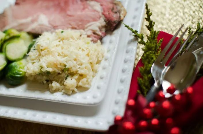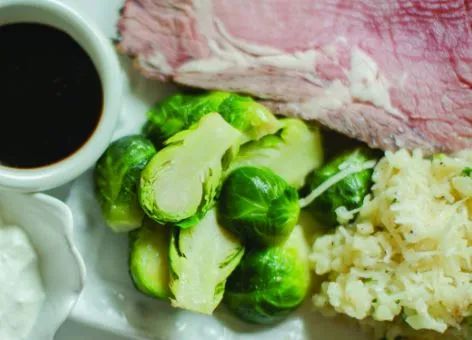 While the prime rib is resting, it’s the perfect time to prep the side dishes. Maplethorpe says mashed potatoes are always a fine accompaniment but one of his go-to pairings is risotto. For your vegetable, this Executive Chef suggests Brussel sprouts. He says, “We serve a lot of Brussel sprouts, plates come back clean.”