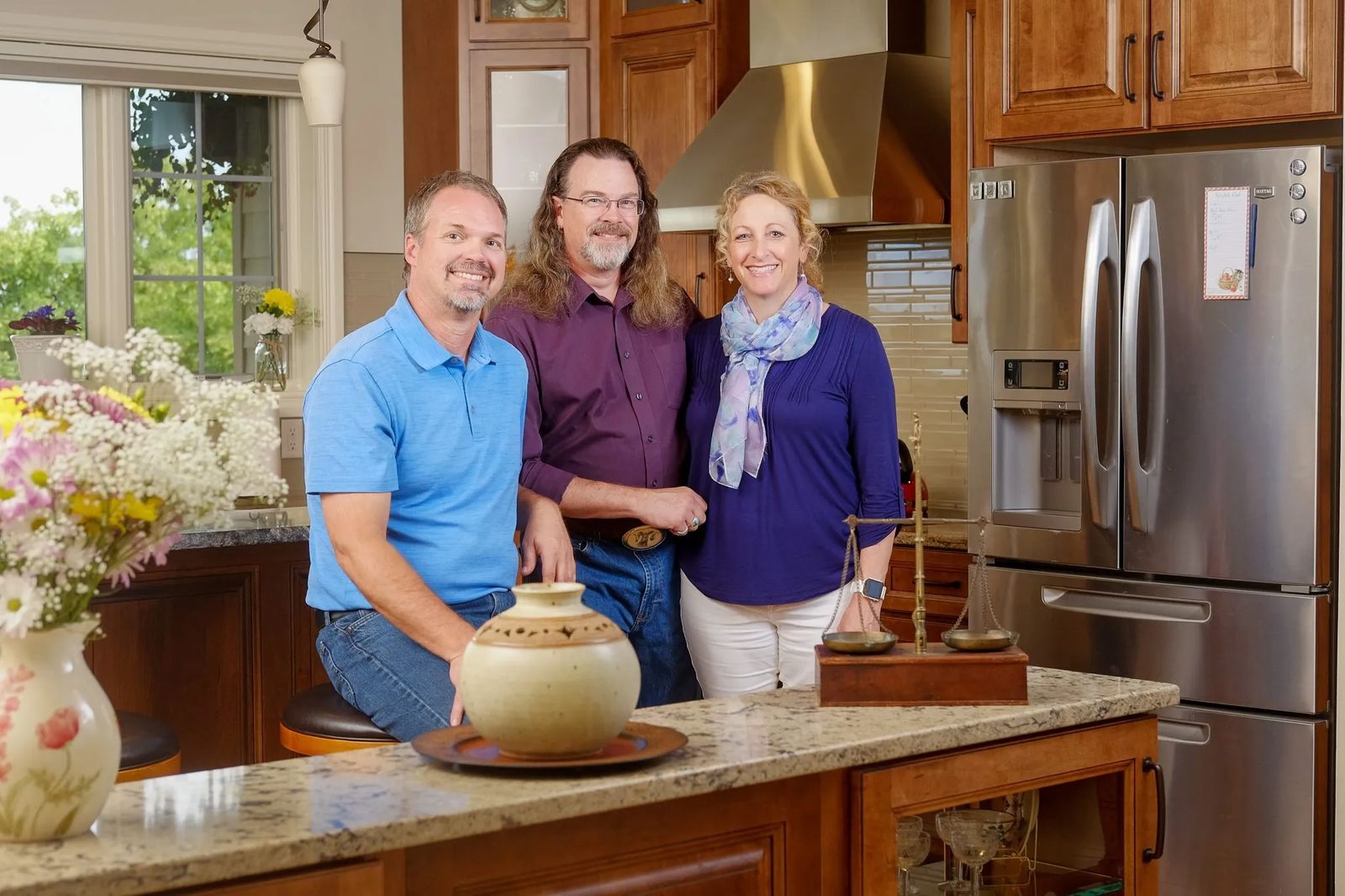 L to R: Contractor Jeremy Freyenhagen with homeowners Steven Zediker and Paula Roos Zediker[/caption]