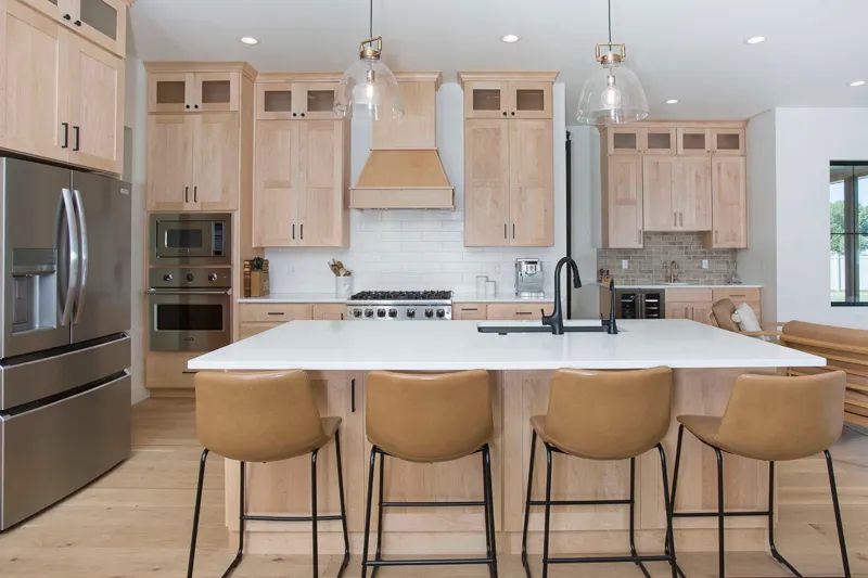 If the heart of the home is the kitchen, the pulse in this space is, once again, earth tones, lighter woods and multi-function kitchen islands for today’s modern family.