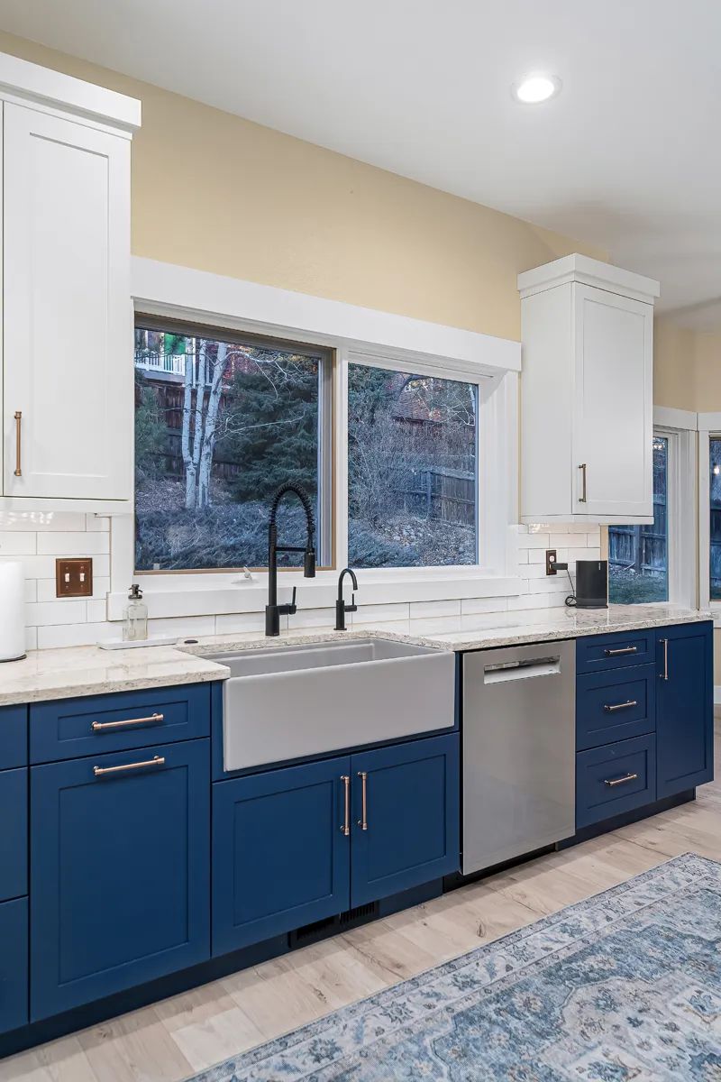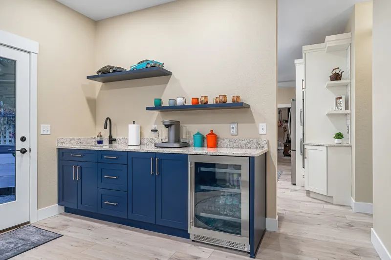 One interesting challenge, Tom says, was the presence of two exterior doors in close proximity to each other in the pantry and bar areas.