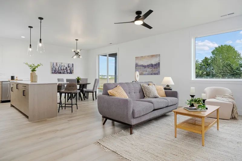 “The open concept is definitely the goal,” Ashley Bokma says. “And we’ve kept it modern to where it doesn’t feel like a starter home. Even the lighting choices are a little more than builder grade.”