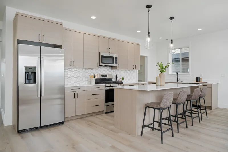 Designer Ragan Yetley with Beyond the Box worked with the Bokmas on all their home’s cabinetry. Together they chose a slab door cabinet that was high on impact with its clean lines and low-maintenance finish.