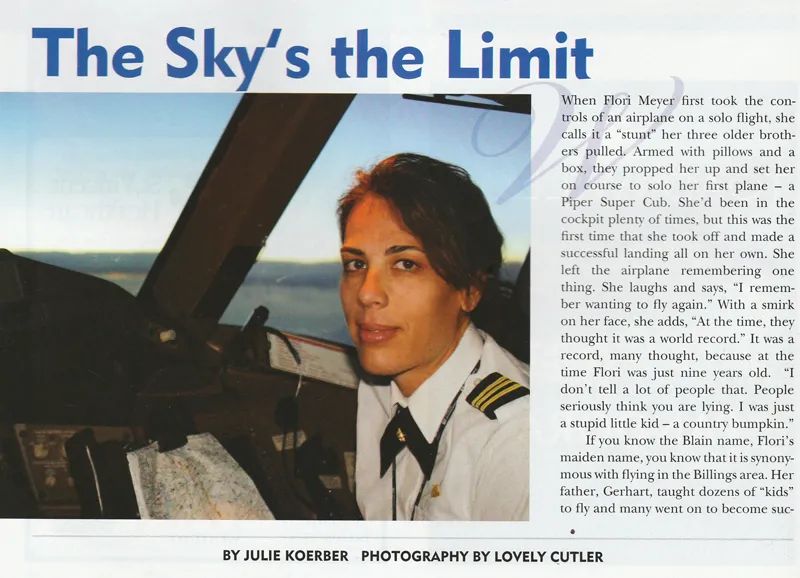 By the time Flori was in middle school, she knew she wanted to be an airline pilot. After high school, she attended Embry-Riddle Aeronautical University in Arizona, but only for a year. Back in Billings the summer after her freshman year, she landed a job with Big Sky Airlines and never looked back.