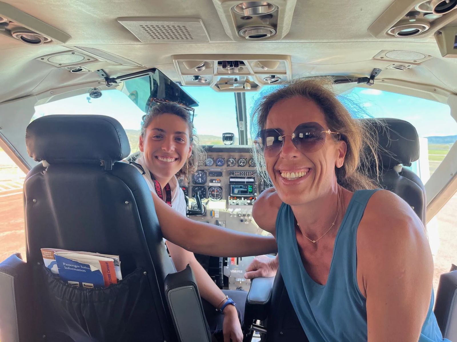 These days, in addition to sometimes flying with family members on the job, Flori is doing more recreational flying in her Cessna-182, which she describes as a “safe, practical plane that seats four people.” She and daughter Marin flew with a friend of Marin’s to the Bahamas, and even stopped in Florida to pick up Flori’s husband Bill, who didn’t want to be in the back of a small airplane for the whole flight.