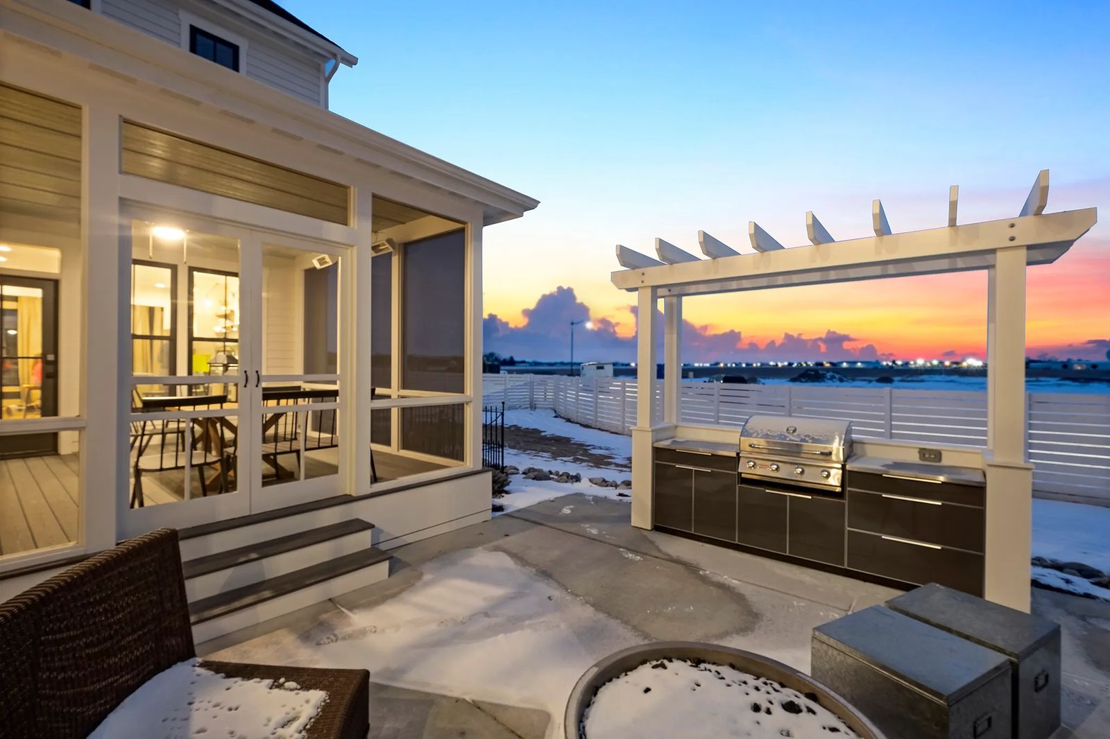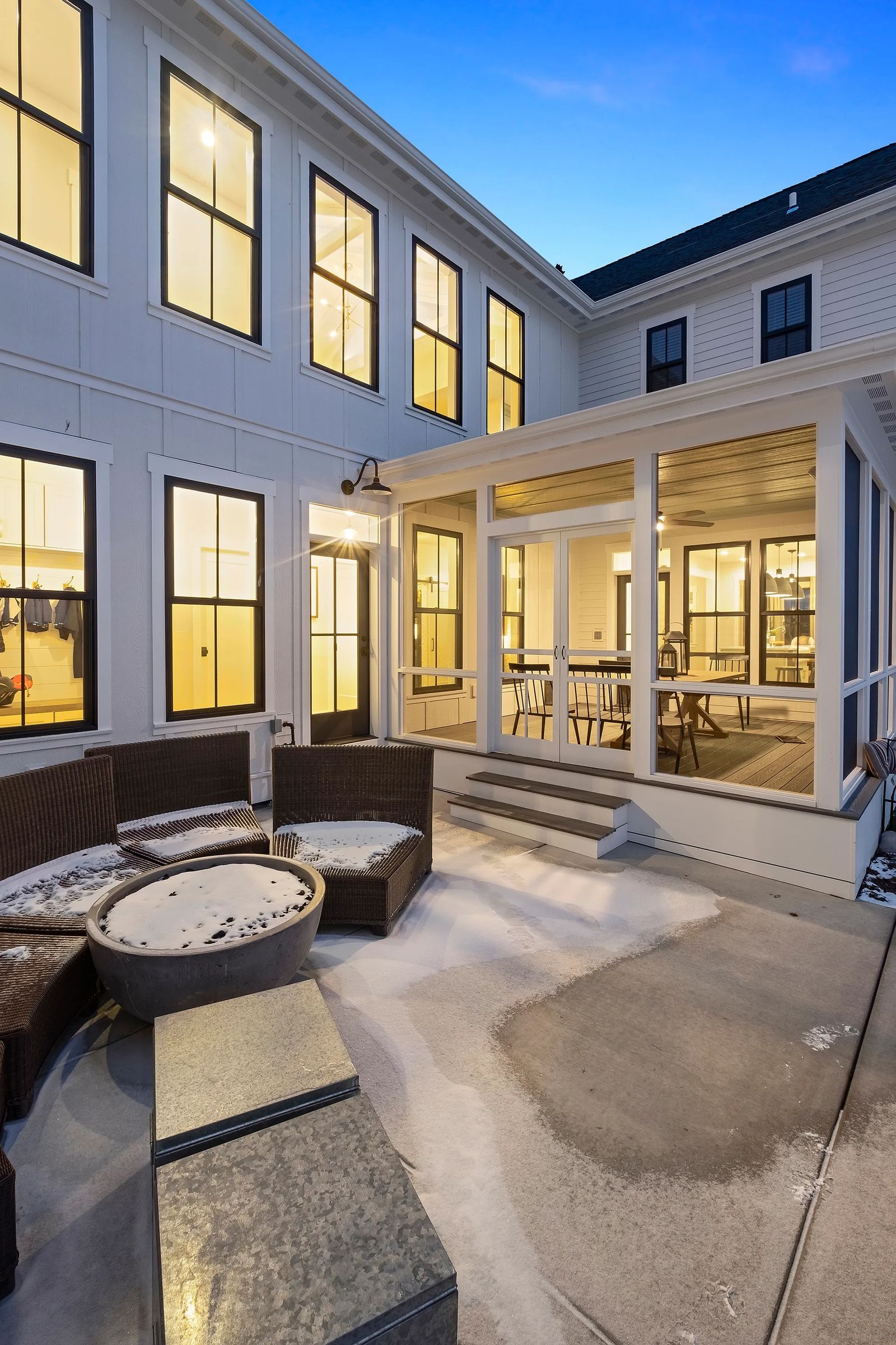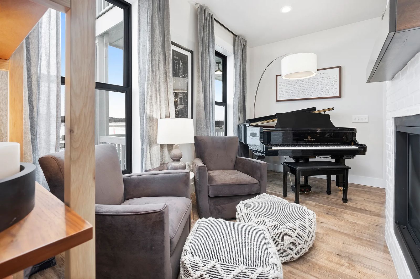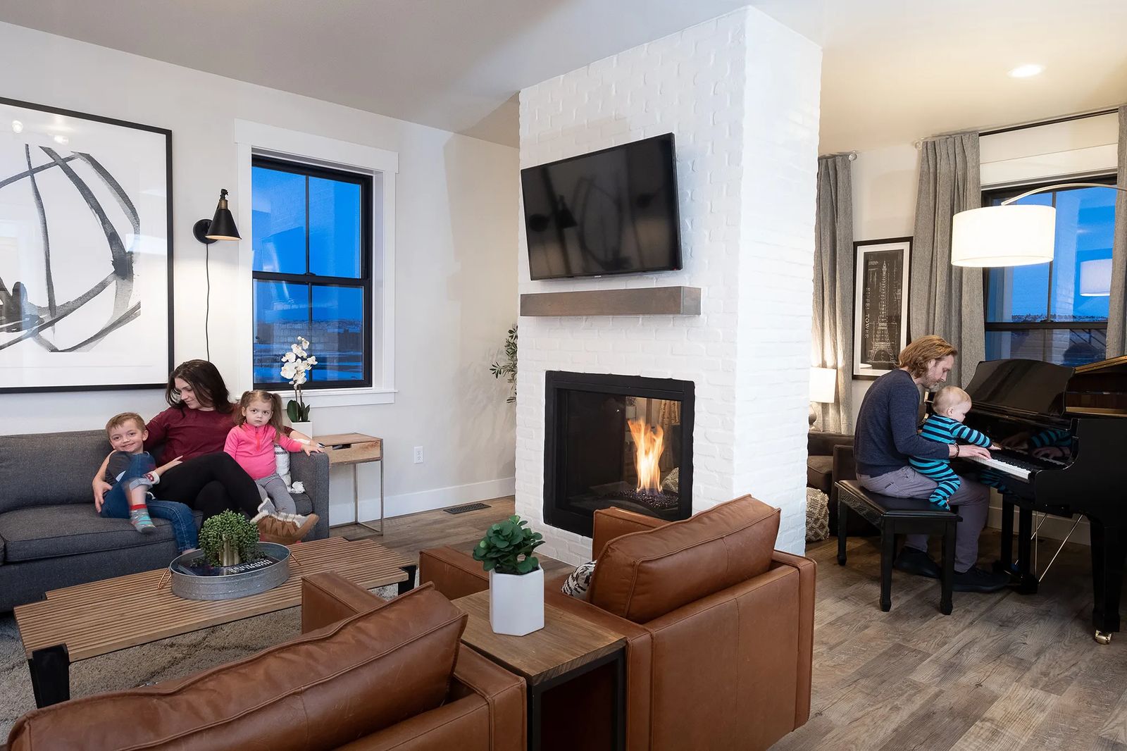 “The main idea for this home was having the view,” Carolee notes. “We can see the geese.” She and Chris benefit as well, with a birds’ eye view over the neighborhood park where their three little ones will play this spring.