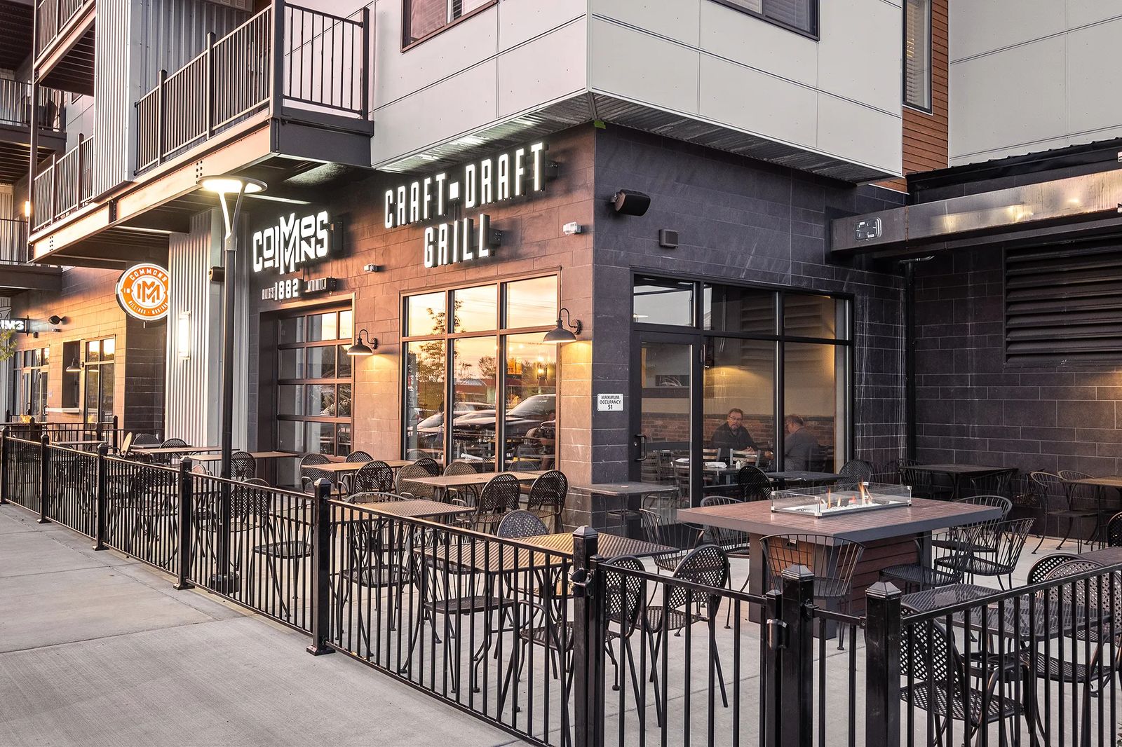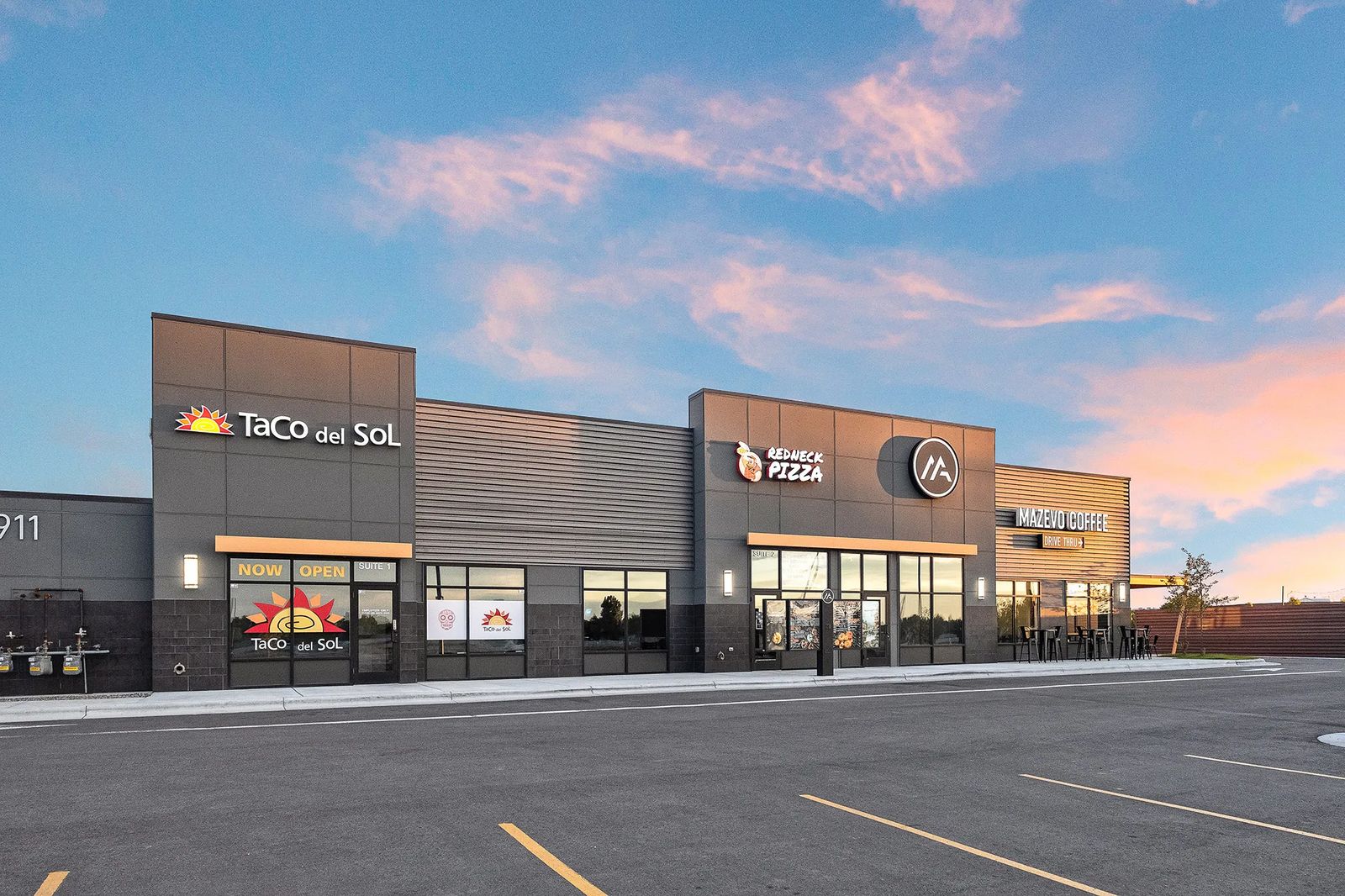 "We created that urban feel," says architect Frank Nienaber of Studio 4 Architects. "A lot of light, a lot of glass to see the Rims and different mountain ranges. Tenants can live here without constantly driving somewhere. And since Mike wanted a more contemporary design, we created courtyards and pedestrian areas with wide, deep sidewalks and patio space."