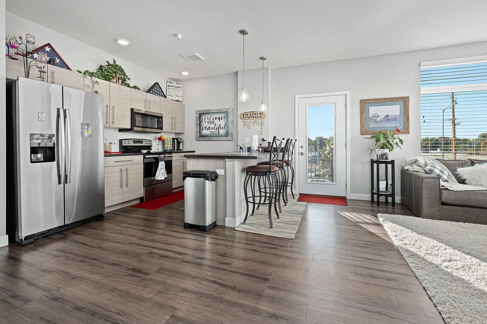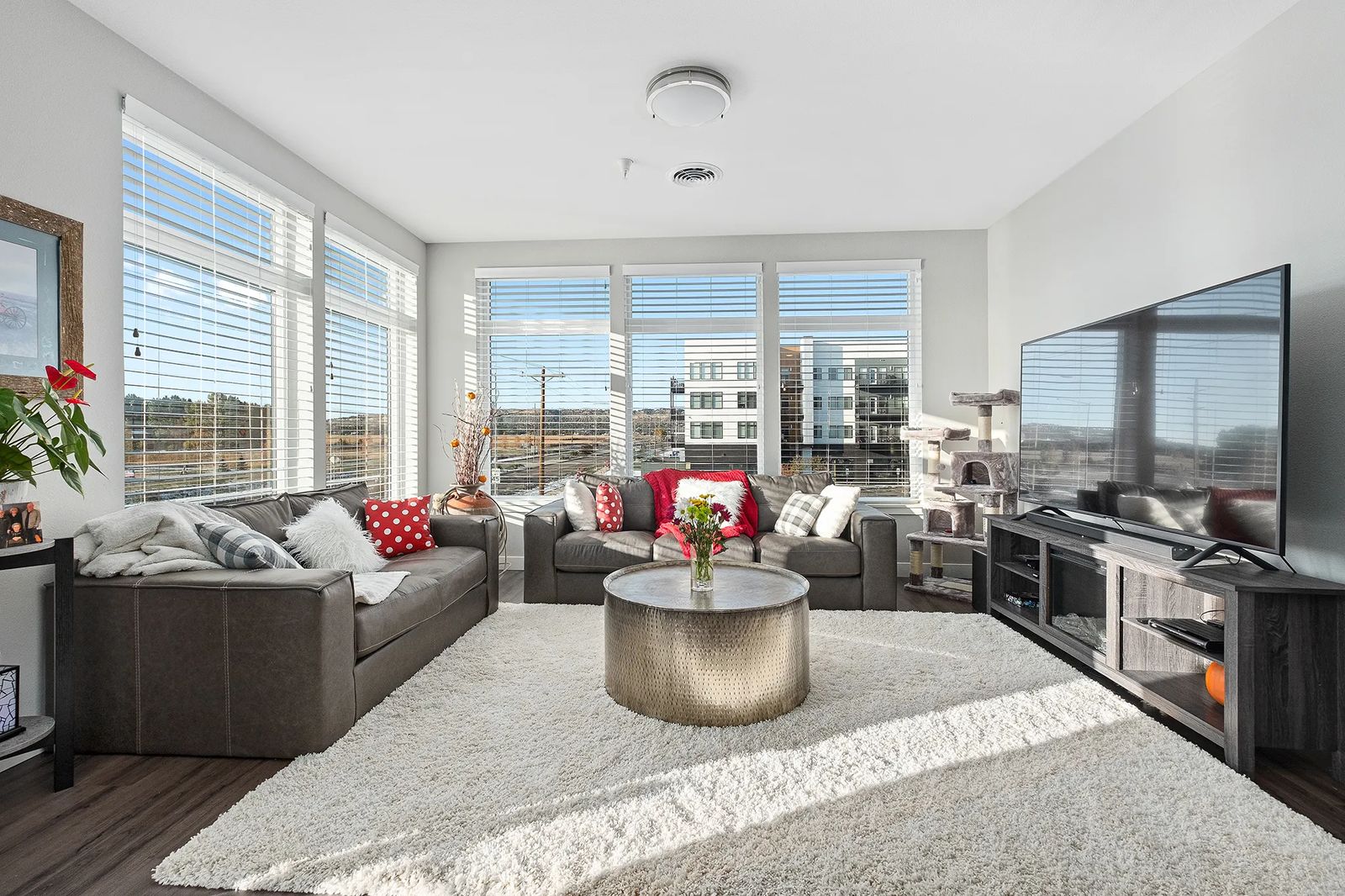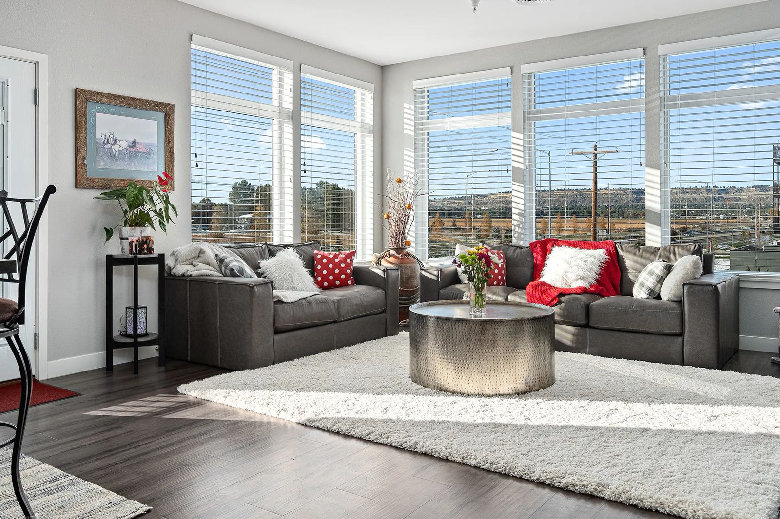 The Rauch apartment sits on the second floor. Their 1,440-square-foot corner unit has large windows that provide stellar views of the rims to the north and sunsets to the west.
