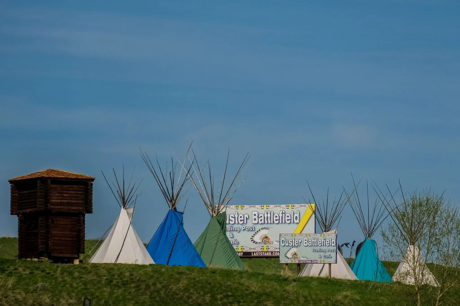 Outside the trading post, bundles of tipi poles lend the place its local color. Inside, the gift shop overwhelms the senses with its vast book collection, jewelry, western apparel and memorabilia.