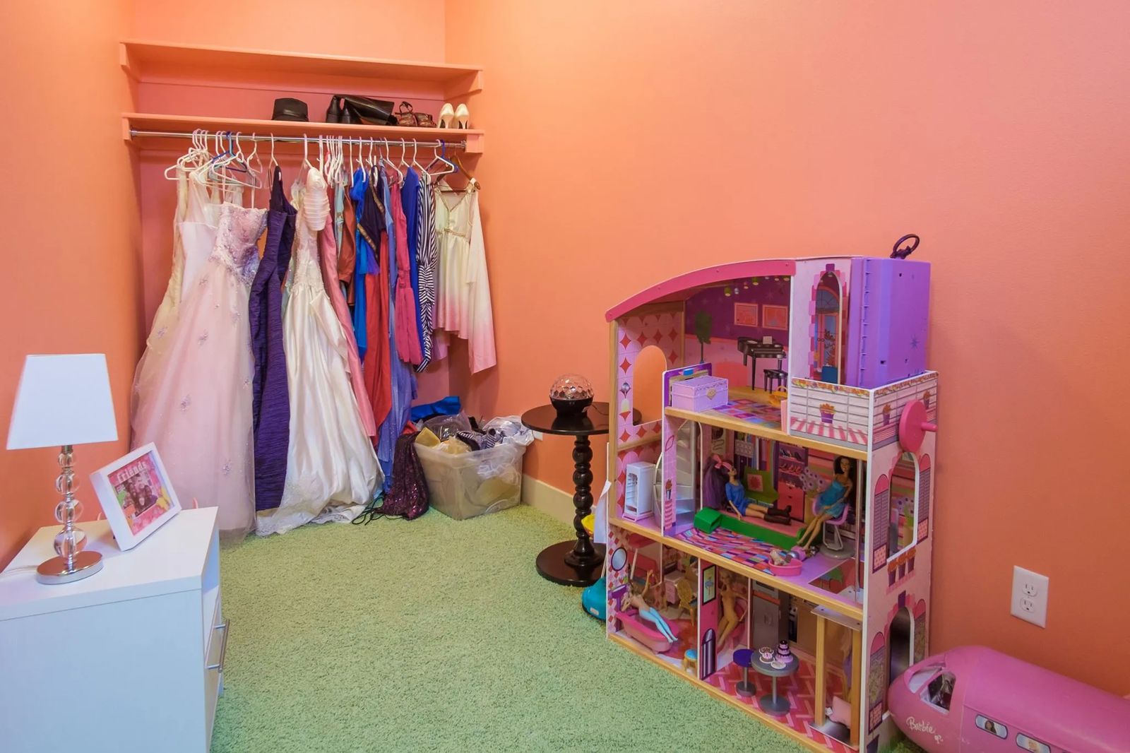 The expansive daylight oasis explodes in pure wonderment. Each of the kids’ brightly-colored bedrooms expresses individual personality. A playroom filled with dress-up clothes and a Barbie house invites imaginative minds.