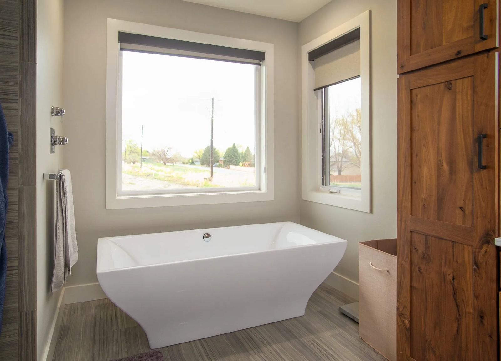 Wide-plank oak floors from Carpet One instill that slice of western flavor throughout most of the main level while state-of-the-art kitchen appliances reflect cutting edge technology. A double convection wall oven Jenny insists she “couldn’t survive without,” a microwave, dishwasher, black glass induction stove top and built-in refrigerator top off the list.