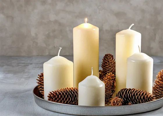 Inside, bring the same layered, natural feel to living spaces. Soft throws and textured pillows in neutral shades or muted patterns make sofas and chairs instantly cozy. Vases filled with dried grasses, evergreens or pale blooms in blush, ivory or peach add natural touches while seed pods, pinecones or nuts add texture and visual interest. Muted metallic accents such as a bronze bowl, gold-edged mirror or candleholders provide subtle shimmer. Candlelight can anchor seating areas or a dining table; a few votives on a tray or a pillar candle near a mirror will reflect light softly through the space creating a golden glow. Fairy lights add warmth and atmosphere when placed along a mantel, bookshelf or windowsill.
