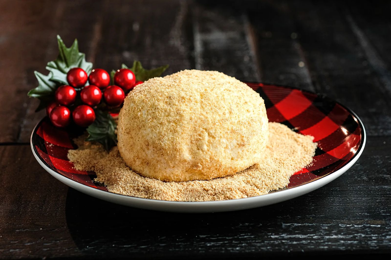 Put the cheese, sugar, lemon zest and juice in a food processor and pulse until blended. Remove and divide onto two sheets of parchment or wax paper and shape into two evenly sized balls (this will be soft). Wrap in parchment paper and refrigerate at least three hours or overnight. Remove from fridge and reshape into a more uniform ball shape. Crush graham crackers into crumbs and place on a plate. Roll the cheese balls, one at a time, in the cracker crumbs. Refrigerate until ready to use.