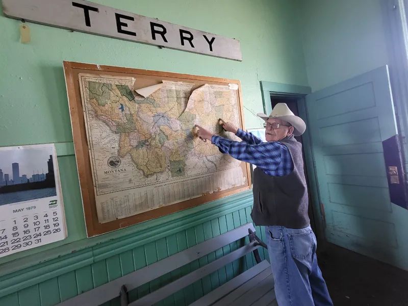Our tour continues to an old steam-heated outhouse, the Burlington Northern train depot, and the original 1906 State Bank of Terry building.