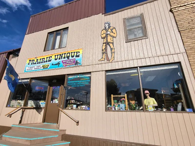 Prairie Unique is our destination. This shop, owned by Dale and Kathy Galland, is a gift and hobby shop in one. As we step inside, a woman’s voice shouts an enthusiastic “Hello!” With a bright smile, Kathy bounds out from the back. She greets us as though we were long-lost friends and immediately hands us a piece of caramel swirl saltwater taffy.