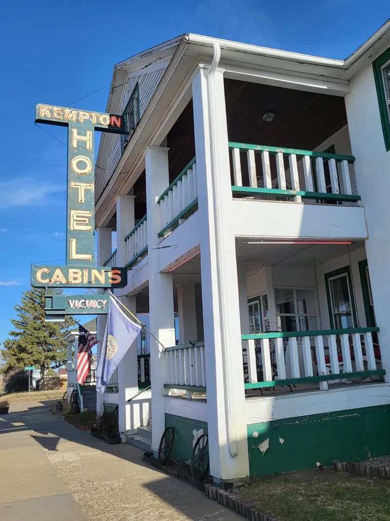Returning to town, we moseyed over to the Kempton Hotel. Built in 1902, the colonial style two-story white building sporting a prominent neon sign is a museum.