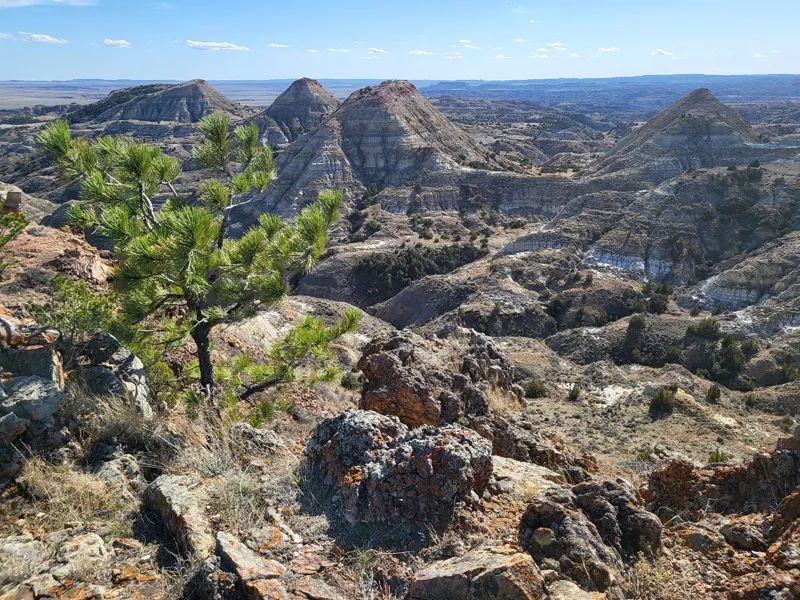 Dale from Unique Prairie takes us on a shuttle three miles from town to the Terry Badlands, a designated Wilderness Study Area by the Bureau of Land Management. This beautiful, desolate landscape showcases spires, buttes, hoodoos, ravines and canyons.