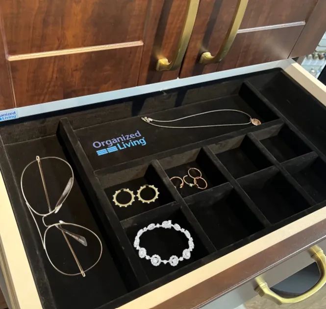 Struggling to figure out where to store your sunglasses, cuff links, rings or earrings? Worry no more! Check out this velvet lined accessories drawer to give a spot to store even your smallest belongings.