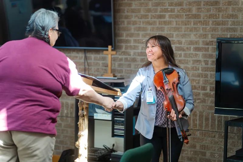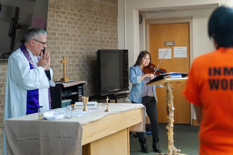 She could be anywhere else on this Sunday, but she chooses instead to be a light for the women behind these walls. During the nearly hour-long service, she sings and plays her violin for roughly a dozen inmates.