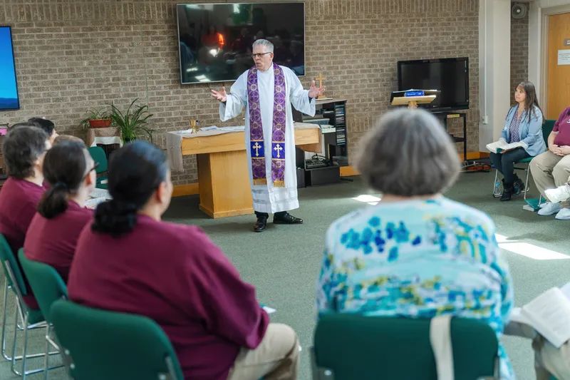 For decades, the Rev. John Houlihan led Mass at the prison, but now in his late 80s, has retired. The Revs. Jose Marquez of Mary Queen of Peace Parish and Leo McDowell from St. Patrick Co-Cathedral now take turns presiding.