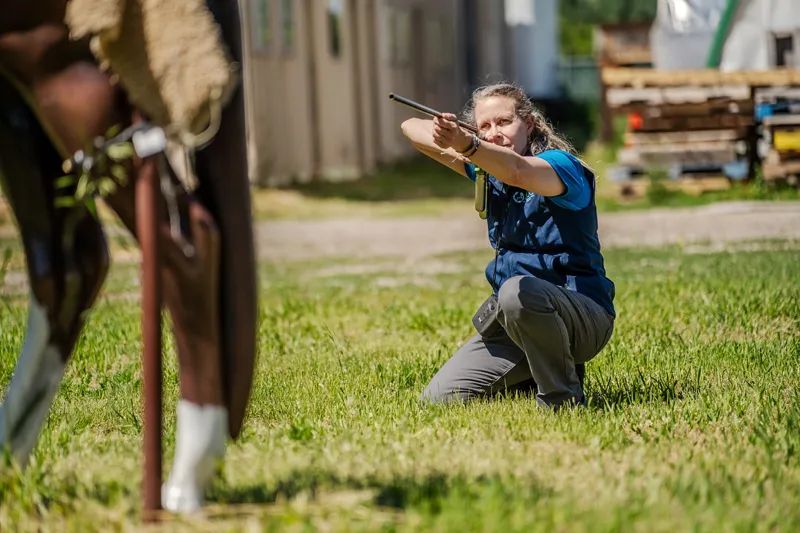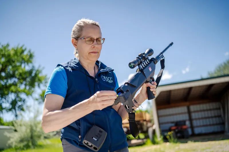 Since a wild horse is unlikely stand still for a vaccine, Kayla and those she trains use dart guns to target the mares of a herd. It requires good placement and a good aim.