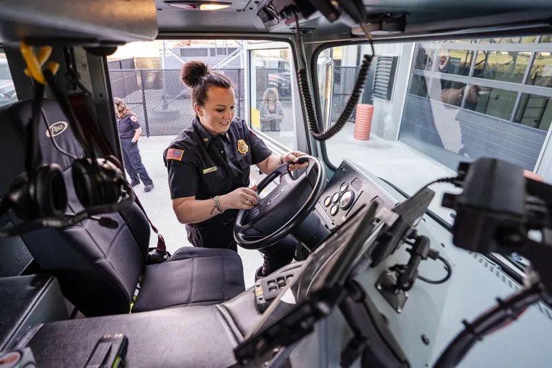 “Everyone was so encouraging, and seeing Lindsey as another woman in the department — not that I will ever hold a candle to her — proved that I could do it,” Katie says. “There’s a space for women in this career.” In addition to being an engineer, Katie serves as the department’s public information officer. She provides fire prevention education in the schools and also heads up child safety seat inspections.