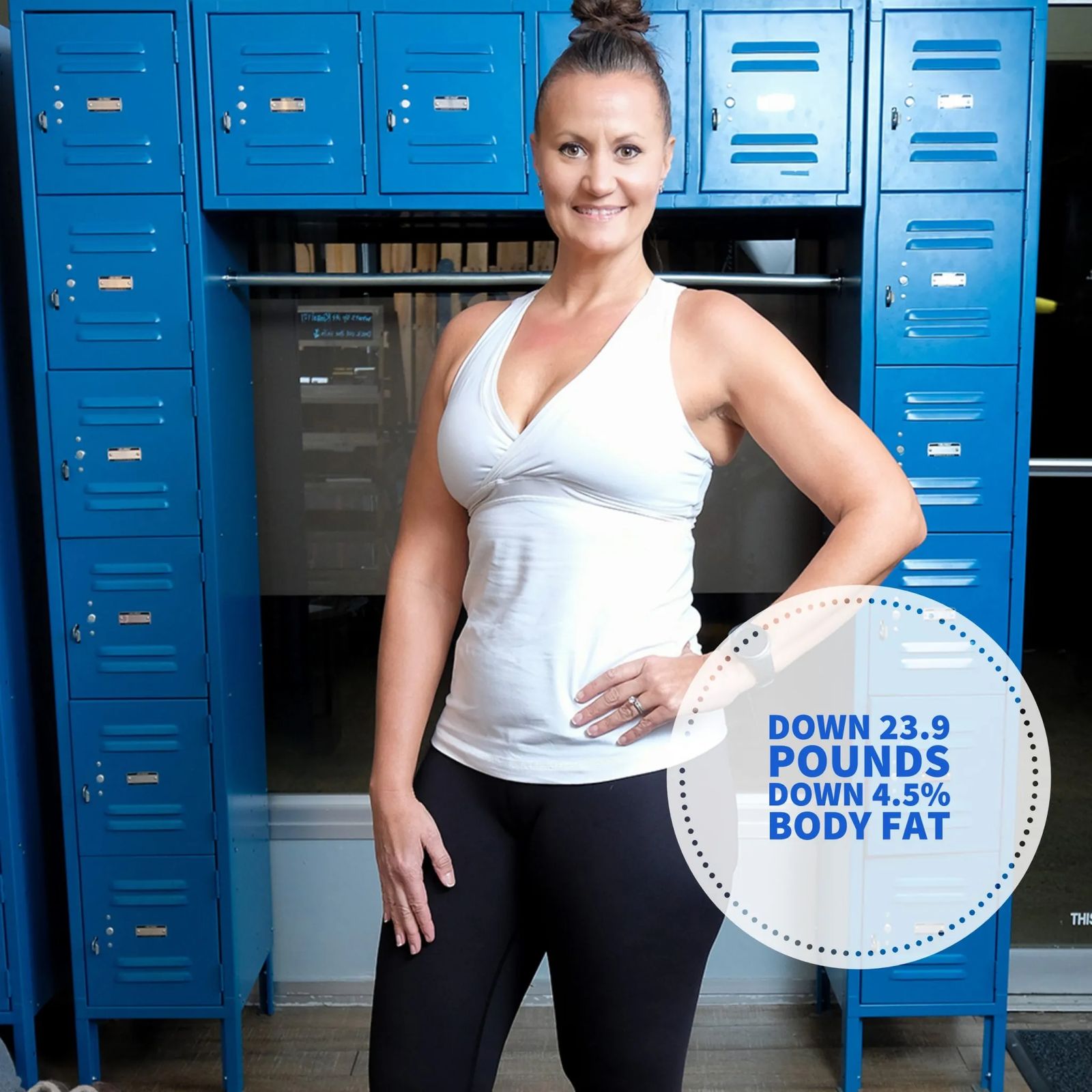 When it comes to nutrition, Lynn’s coach, Kristen Ballard, says she’s watched Lynn get over the hump of, “but what CAN I eat?” Kristen says, “She seems more confident in her abilities to make this a permanent change. Once we got past the initial pushback and doubt, she has really embraced this way of eating.” Bottom line, Kristen says she knows Lynn feels better when she’s eating nutrient-dense food and staying away from what she calls “the processed junk.”