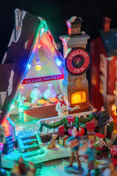 While many of the pieces are personal and priceless, like the hand-painted Village Inn Pizza Parlor or the tiny church where Steve and Kari got married in Gatlinburg, Tennessee, there have been a few additions which Kari calls her “purple unicorns.” There’s the Department 56 Greenhouse that no one can seem to find anymore, and the treasured Aldi store replica she hunted down while visiting her son in Florida. Apparently, the store only makes a select number each year and it’s a purchase the store will not ship.