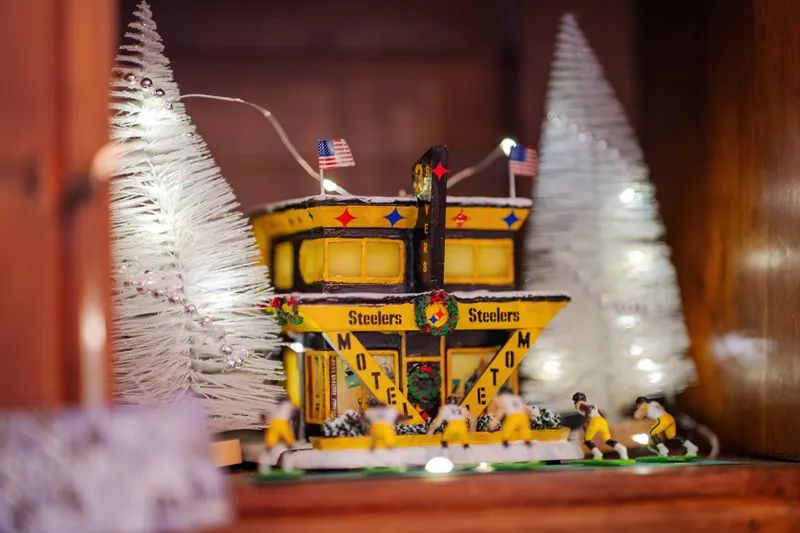If you move through the village, you might catch a few surprises. She’s hidden the Where’s Waldo character somewhere in the display. Olaf from “Frozen” is buried in the snowdrifts. Even Bigfoot lurks, waiting to be spotted. As she picks up a piece in her cherished village, she points to the handwritten date on each piece showing the year it was purchased.