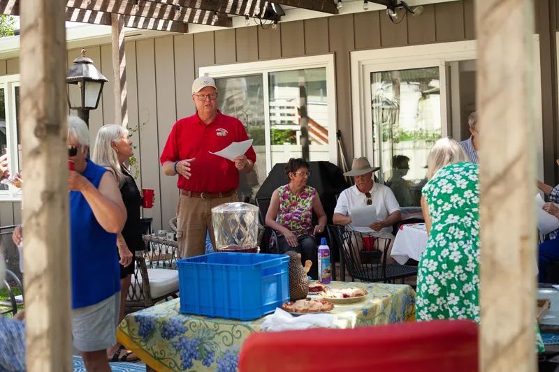 “I'm hoping that this just carries on forever,” Bob says, “and that it just gets better and better.” He smiles as he says, “The meetings are very educational, lots of fun with lots of laughter.” Pointing to the freshly baked strawberry pies waiting to be served, Bob adds, “Oh, and a lot of good treats.”