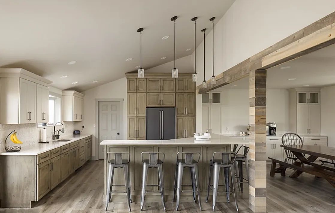What makes a good design, a better design and a best design? Kristy says, you might choose standard height cabinets in the good design, the better design might be extended height cabinets, and the best might be cabinets that go straight to the ceiling with glass door details. Counters might be laminate or upgraded to quartz or the top of the line stone with mica flakes.