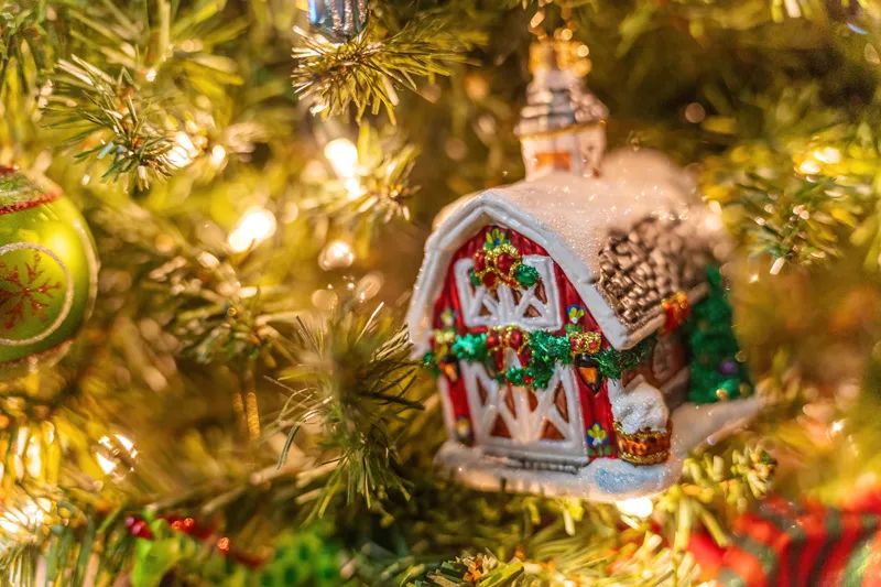 Each ornament is intentionally placed. Julie makes sure of it. The bigger ones are spaced, and the pattern goes from big to medium. “Ones that mean a lot to us go in front,” she says.