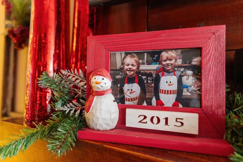 The Kids’ Homemade Tree reflects the years Kayden and Peyton have hand-crafted ornaments either at home or at school. “We’ve had to upgrade the tree due to more ornaments the boys have made,” Julie says. “It’s now seven feet tall.”